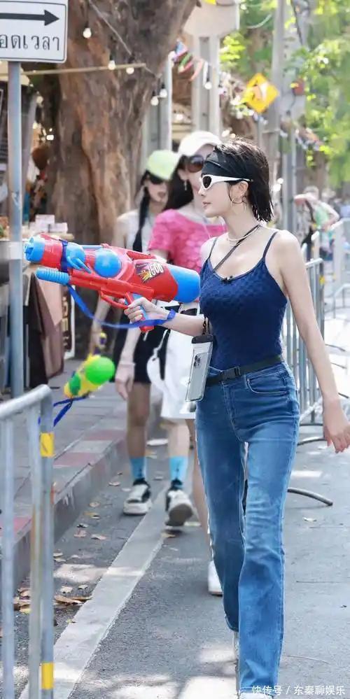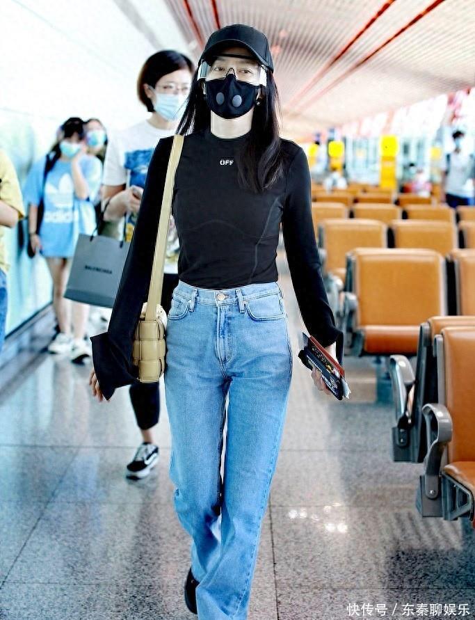 照片里,她穿着简单的牛仔裤,身材线条流畅自然,整个人看起来健康又紧致。没有那种刻意锻炼出来的僵硬感,而是一种透着活力的好状态,在人群里特别显眼。